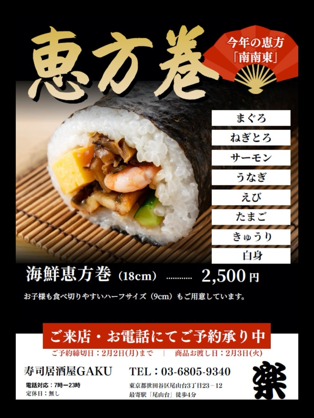 ●海鮮恵方巻(18cm)2,500円